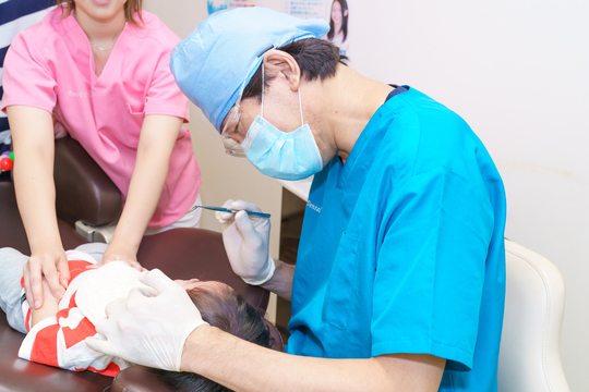 お子さんの治療は、小児歯科の分野で学位を取得した院長が担当しています。また、女性の歯科医師である副院長も、小児の分野で研鑽を積んでおります。私どもはこれまでに、のべ5万人(※)に上るお子さんの治療にあたってまいりました。