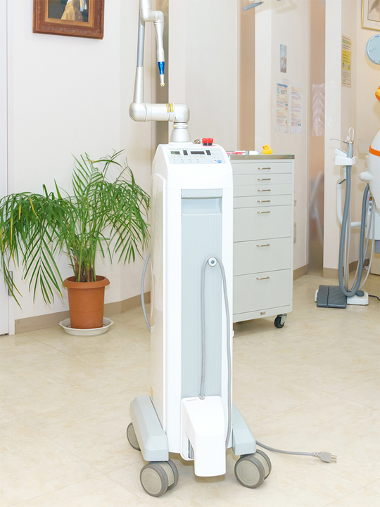 歯ぐきなど、主にやわらかい組織の処置を行うときに使うレーザーです。止血作用があります。