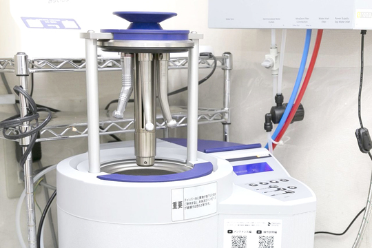 歯を削る機器であるタービンやハンドピースの洗浄・注油・滅菌を、自動的に行える滅菌器です。患者さんごとに清潔な機器を使って治療できるようにと考え、導入しました。