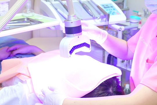 ホワイトニングを促進する特殊な光を歯に照射します。