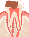 深いむし歯や歯の亀裂、歯への外傷によって歯髄が細菌に感染したり、損傷したり、歯髄死になることもあります。