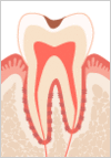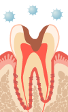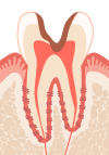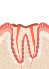 歯肉から上の部分(歯冠 )がほとんどなくなり、根(歯根)だけが残されている状態です。C4までなると逆に痛みがなくなってしまい、放置してしまいがちですが、神経が死んでしまっているため、根の治療をしても残せない場合には、抜歯をしなければなりません。歯を抜いた後は入れ歯やブリッジなどをすることになります。